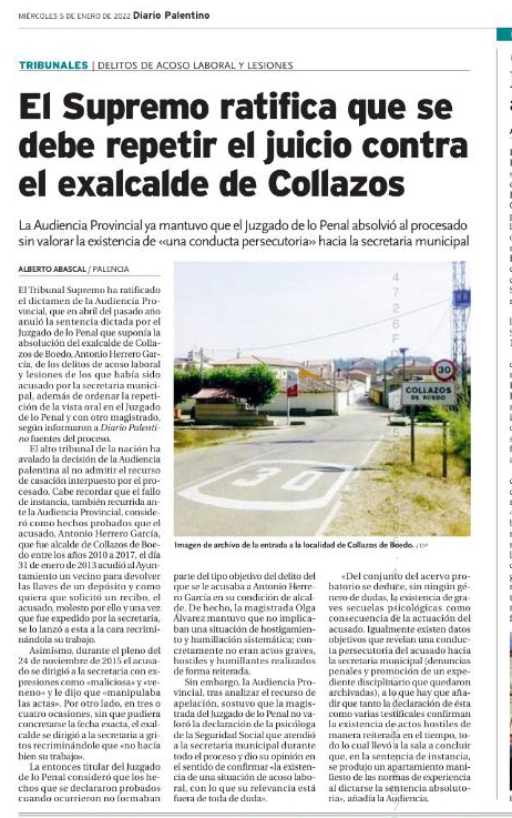 El Supremo ratifica que se debe repetir el juicio contra el exalcalde de Collazos